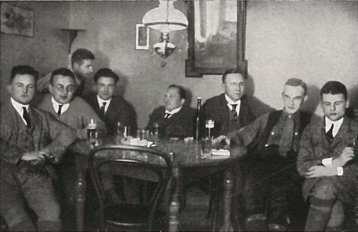 Fotografie der Mitglieder der NSDAP-Ortsgruppe aus dem Jahr 1925, erschienen in einer 1935 veröffentlichten Festschrift zum 10-jährigen Bestehen der Ortsgruppe