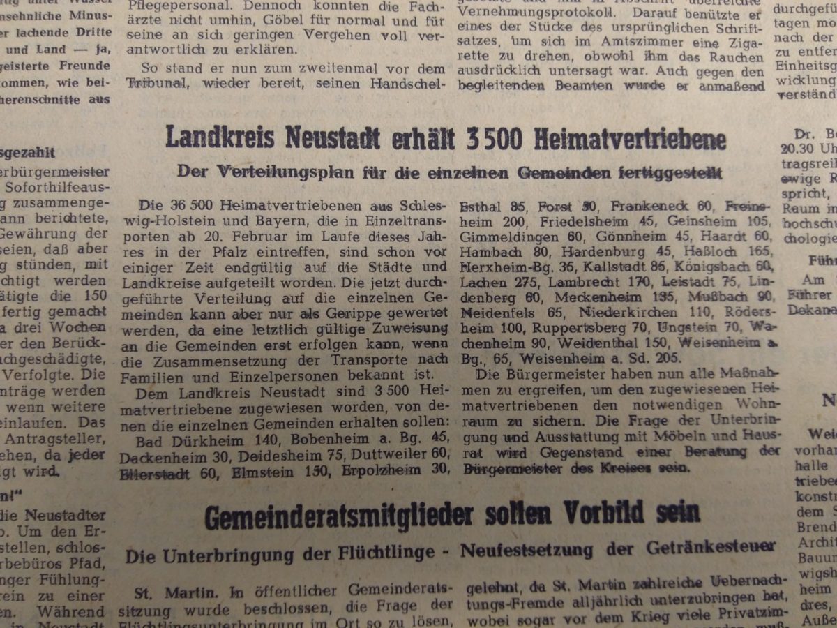 Berichterstattung von Die Rheinpfalz, 1950; Stadtarchiv Neustadt 5662, 7634, 8080, 9047; Landesarchiv Speyer H41 328.