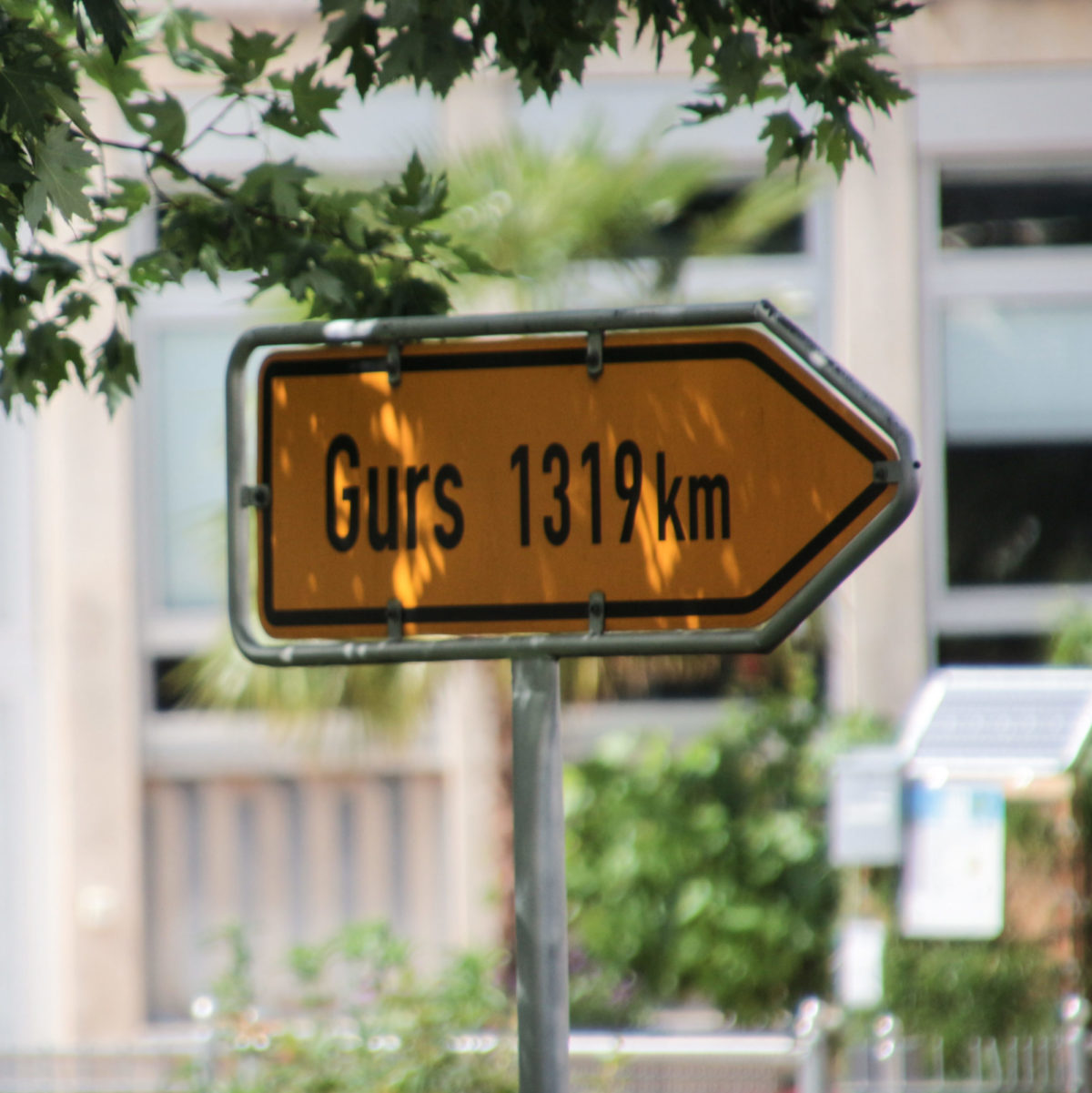 Straßenschild in Neustadt mit Verweis auf das südfranzösische Gurs. Foto: Ulla Treugut (Mainz).