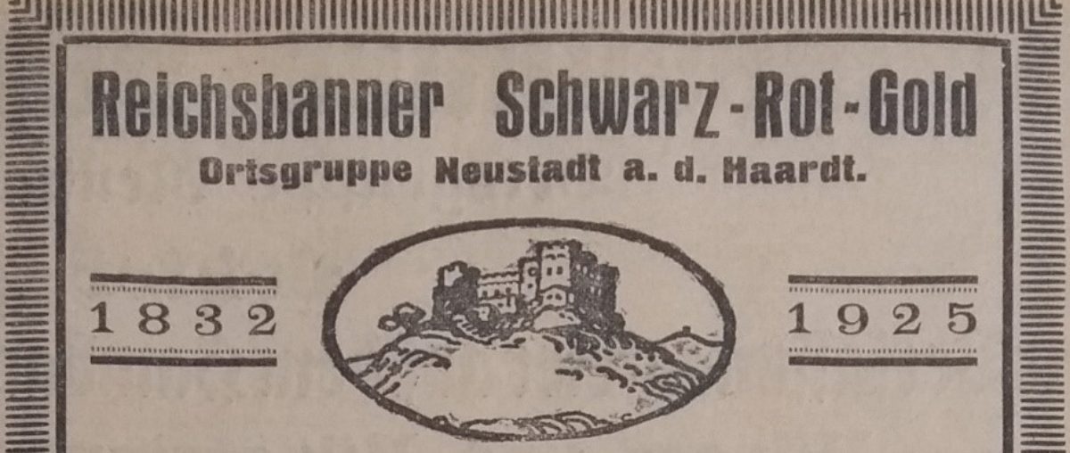 Das „Reichsbanner Schwarz-Rot-Gold, Bund der republikanischen Kriegsteilnehmer e.V.“ wurde 1924 als parteiübergreifende Organisation von den Parteien der „Weimarer Koalition“ (SPD, DDP, Zentrum) gegründet. Das Reichsbanner entwickelte sich schnell zu einer Massenorganisation mit bis zu drei Millionen Mitgliedern, wobei deren Mehrheit parteipolitisch an die SPD gebunden war. Primäres Ziel des Reichsbanners war der Schutz der Weimarer Republik und der Weimarer Reichsverfassung. Dafür setzte es sich z. B. bei Wahlkämpfen ein, veranstaltete Verfassungsfeiern und warb insbesondere für die Weimarer Farben Schwarz-Rot-Gold. Ortsgruppen des Reichsbanners gab es in Neustadt, Mußbach, Hambach, Meckenheim, Neidenfels, Lambrecht, Frankeneck, Grethen, Weisenheim am Sand, Haardt, Haßloch und Bad Dürkheim. Der Bezirksführer des Reichsbanners Neustadt/Bad Dürkheim war in den letzten Jahren der Weimarer Republik Philipp Lützel. Seitens der NSDAP war das Reichsbanner immer wieder Übergriffen ausgesetzt. So wurde z. B. in Neustadt im Juni 1932 während einer Übungsstunde des Reichsbanners durch die Fenster des Übungsraums geschossen und im Juli 1932 (Gautag) wurde das Verkehrslokal des Reichsbanners angegriffen. Das Reichsbanner wurde in Bayern in der Nacht vom 9. auf den 10. März 1933 verboten. In Neustadt und Umgebung wurden Mitglieder und Funktionäre des Reichsbanners verhaftet und in das (frühe) Konzentrationslager gebracht. Bei zahlreichen Hausdurchsuchungen wurde der Besitz der einzelnen Ortsgruppen – wie Fahnen, Bücher, Musikinstrumente und Geld – polizeilich beschlagnahmt und zugunsten des Staates eingezogen.