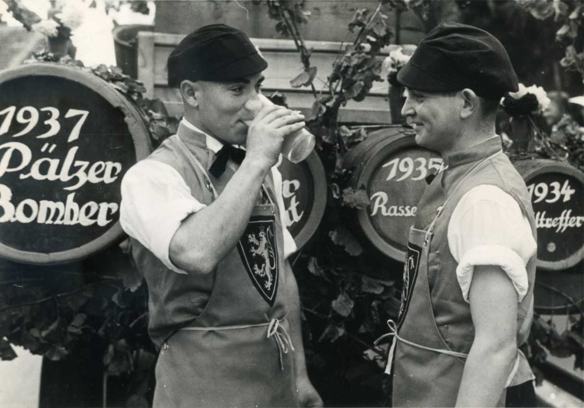 Neben der ab 1931 abgehaltenen Wahl der „Pfälzischen (später „Deutschen“) Weinkönigin“ zählte die Namensgebung („Taufe“) des neuen Weinjahrganges von Anfang an zu den besonderen Höhepunkten des seit 1929 bestehenden „Pfälzischen (heute „Deutschen“) Weinlesefestes“. Nachdem ein vom Vereinsvorstand eigens hierzu eingesetzter Ausschuss den Taufnamen aus den nach Hunderten (später Tausenden) zählenden Vorschlägen vorab bestimmt hatte, setzte sich ab 1932 das Prozedere durch, dass von dieser Kommission lediglich fünf (später sechs) Vorschläge ausgesucht wurden, die man dann am Abend selbst den Festteilnehmern per Wahlzettel zur Abstimmung stellte. Hierbei sollten sich vor allem Namensgebungen durchsetzen, in denen sich der zu erwartende Charakter des neuen Weinjahrgangs mit aktuellen tagespolitischen Geschehnissen verband. Auch noch nach dem Machtantritt der NSDAP durfte das Publikum in demokratischer Abstimmung über die endgültige Namensfindung des neuen Weines entscheiden, was im „Dritten Reich“ zwar vordergründig als überholtes Ritual der verhassten „Systemzeit“ anmutete, hier – zumal angesichts der zur Auswahl stehenden Taufnamen – indes durchaus zum willkommenen Medium nationalsozialistischen (Volks-)Gemeinschaftswillens mutierte. So wurde der 1933er zum „Gleichschalter“ bestimmt, während zwei Jahre darauf unter unmittelbarem Bezug auf die kurz zuvor verkündeten berüchtigten „Nürnberger Rassegesetze“ der „Rassenreiner“ aus der Taufe gehoben wurde. 1936 folgten der „Pfälzer Rekrut“ und im Jahr darauf der „Pälzer Bomber“. Der 1938er erhielt angesichts des in der Sudetenkrise noch einmal abgewendeten Krieges den Namen „Friedenstropfen“. 1996 fand die letzte Weintaufe im Rahmen des „Weinlesefestes“ in Neustadt statt. Seit 2017 wird diese „Tradition“ von der „Pfalzweinwerbung“ fortgeführt.