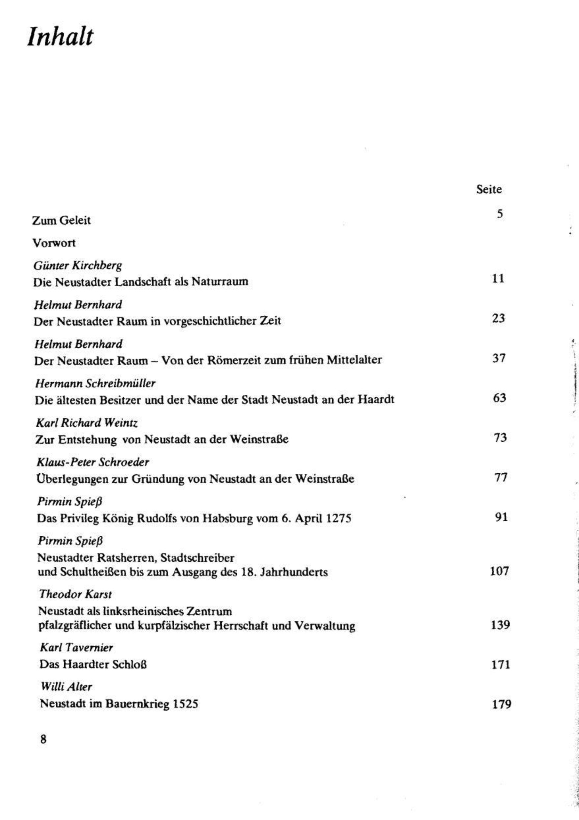 M10: Inhaltverzeichnis der Neustadter Stadtgeschichte von 1975