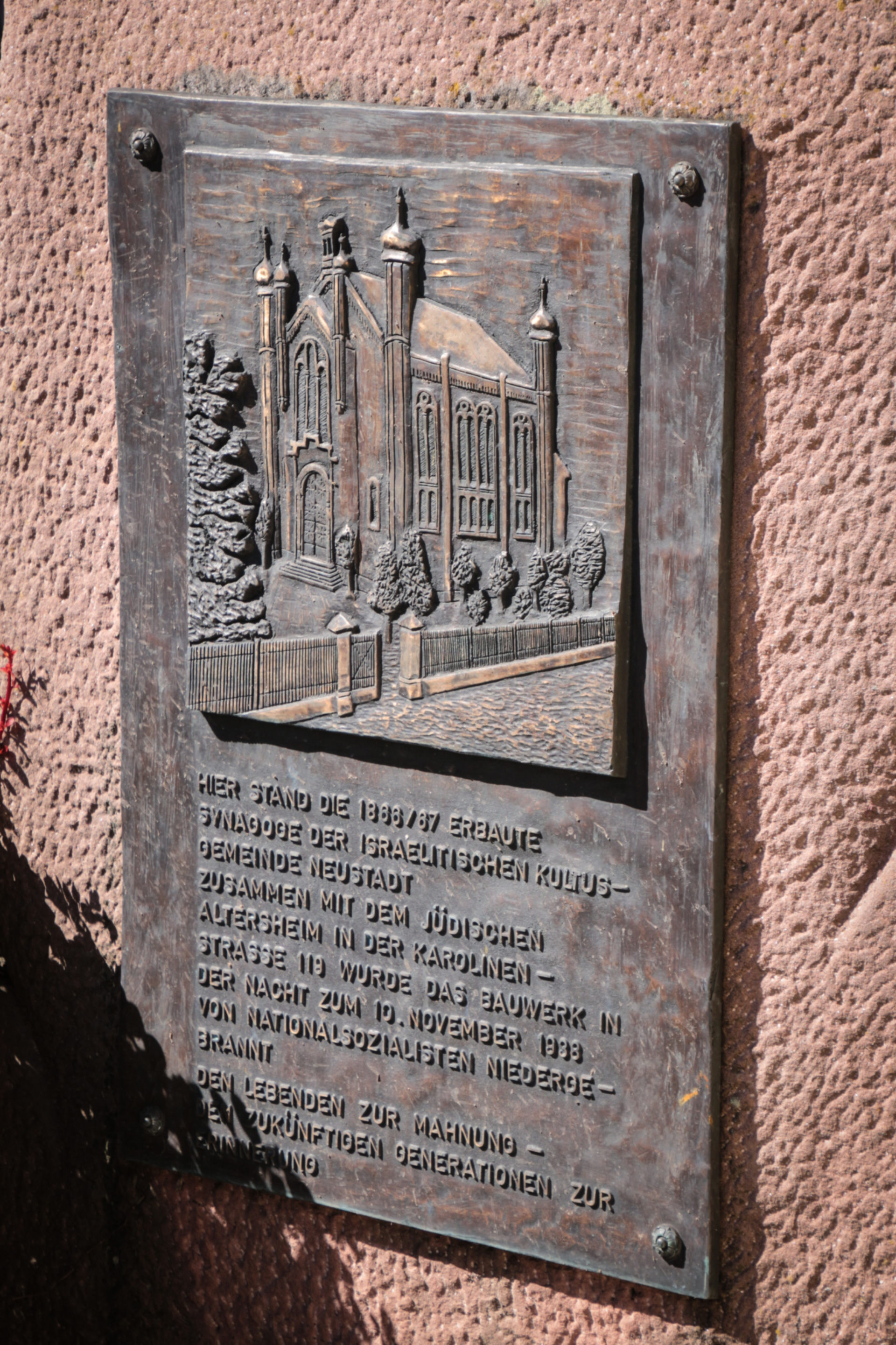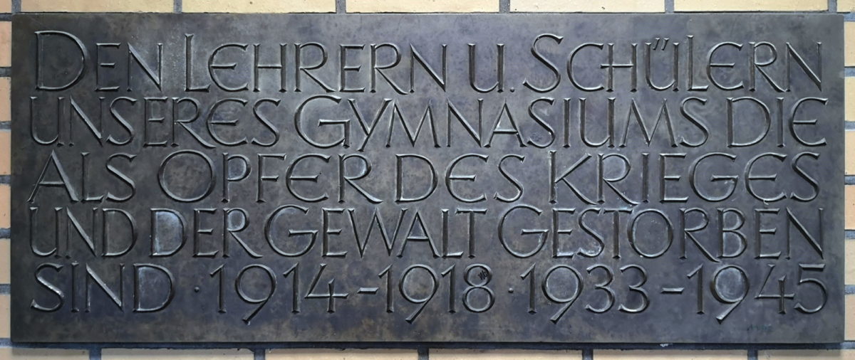 M13: Gedenkplakette im Kurfürst-Ruprecht-Gymnasium Neustadt, vermutlich mit dem Bau der Schule in den 1960er Jahren gehängt