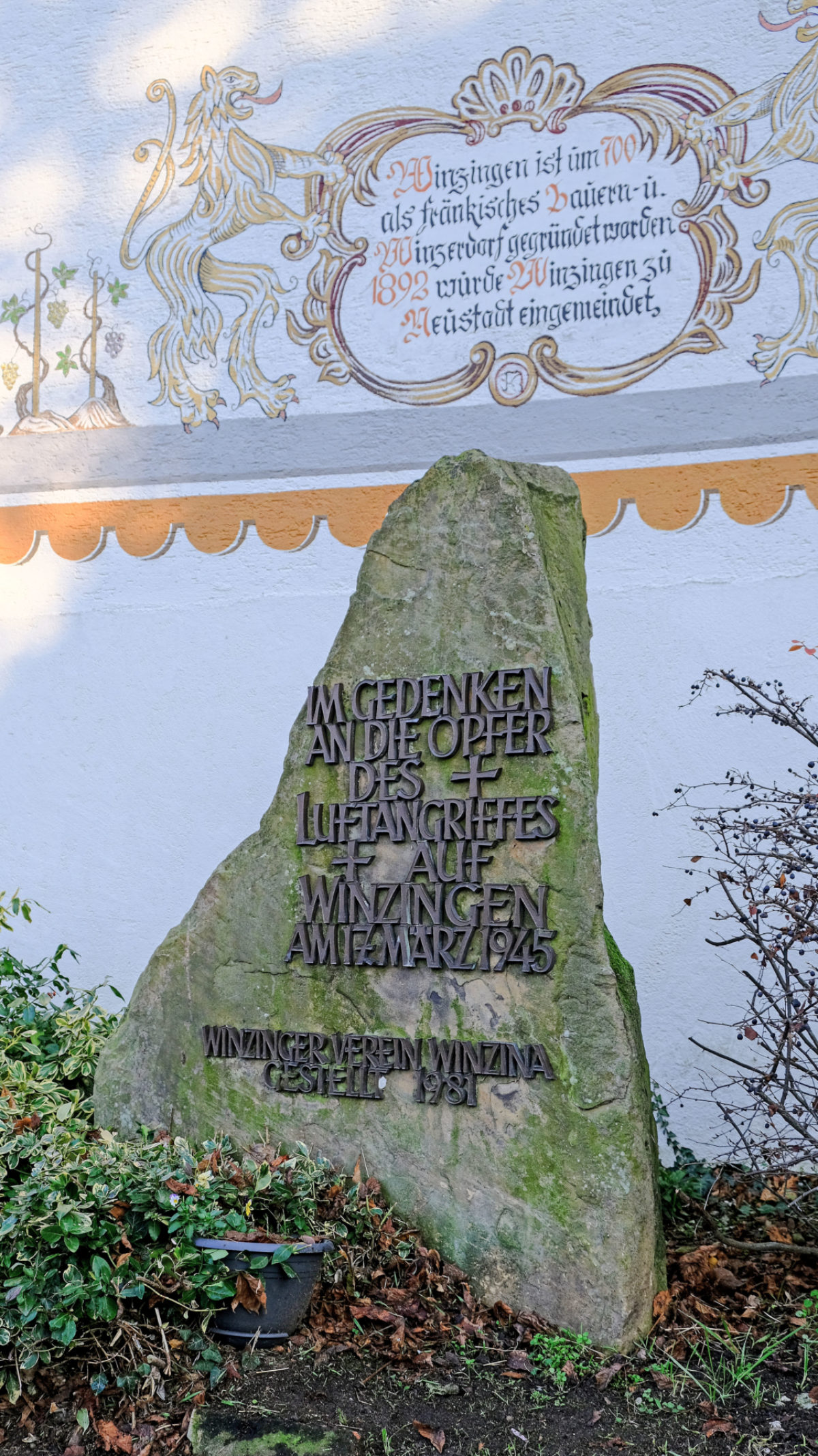 M14: 1981 errichteter Gedenkstein für die Opfer des Luftangriffes auf Winzingen im März 1945