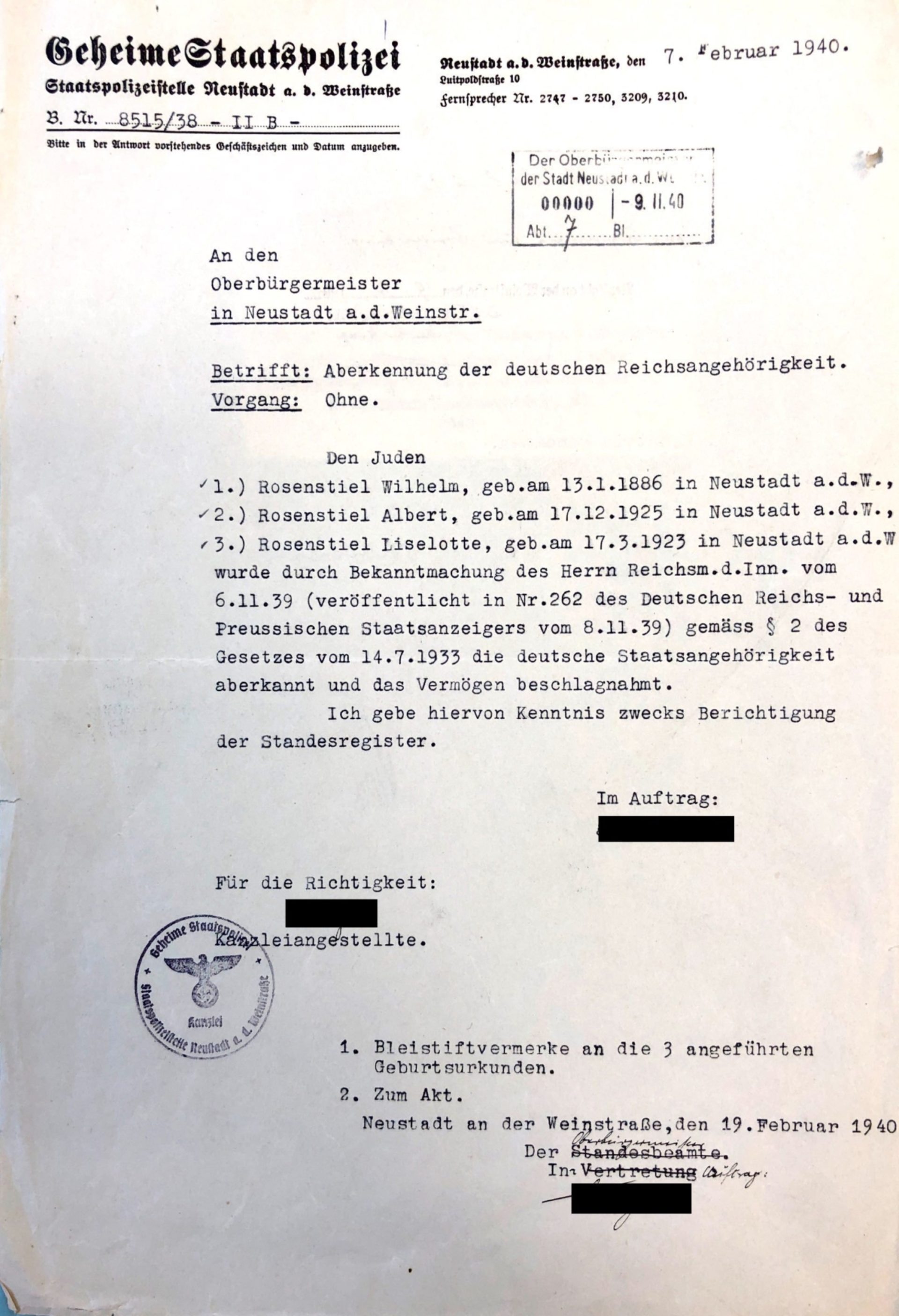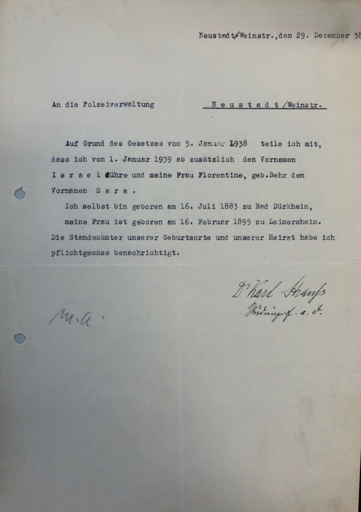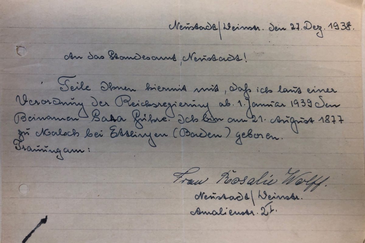 M14: Auswahl an Rückmeldungen jüdischer Neustadter*innen zur Annahme zusätzlicher Vornamen aus dem Jahr 1938