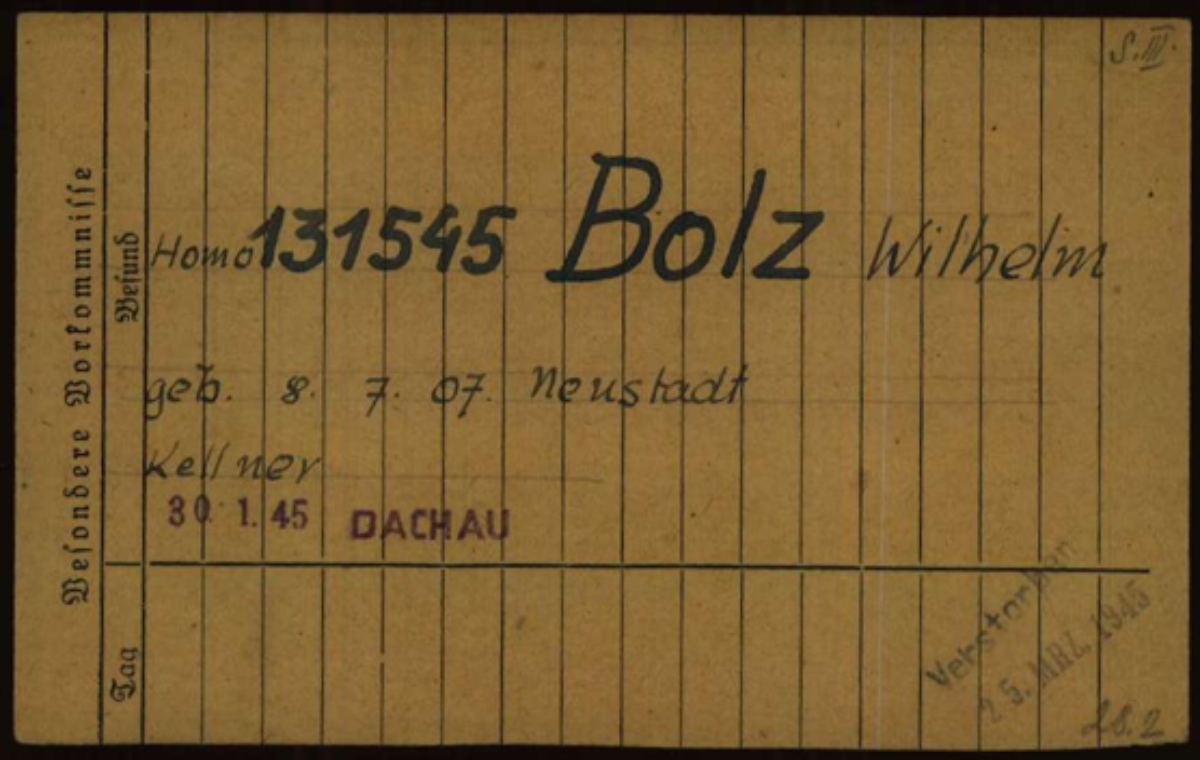 M15: Materialsammlung zur Verfolgung von Wilhelm Bolz aus Neustadt