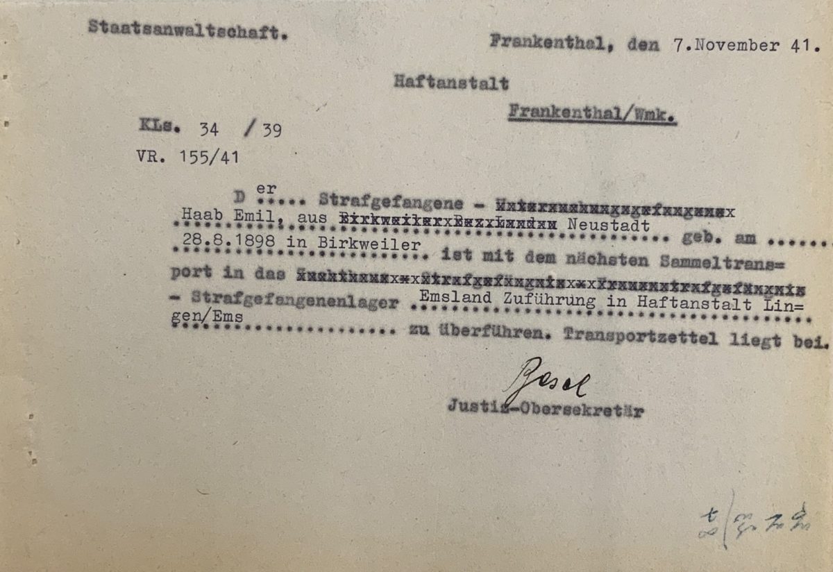 M16: Materialsammlung zur Verfolgung von Emil Haab aus Neustadt