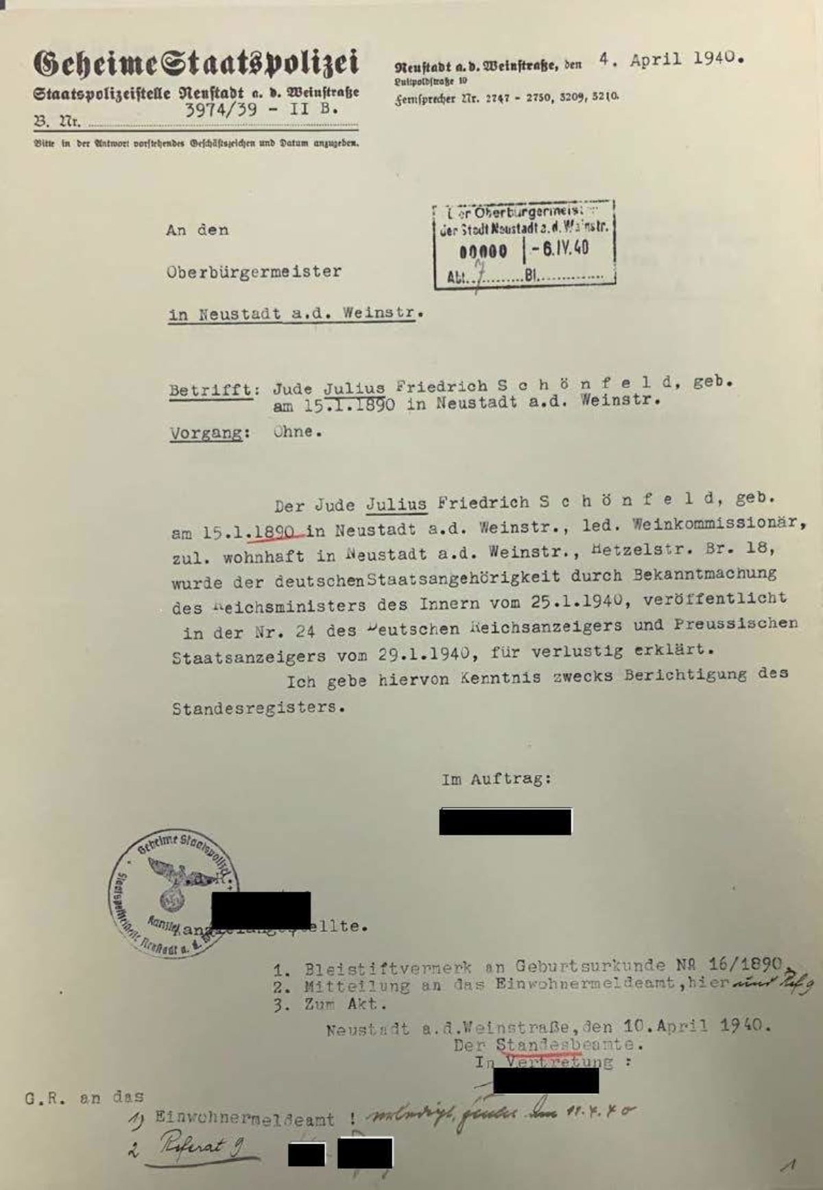 M14: Materialsammlung zur Verfolgung von Gerhard Volk und Julius Schönfeld aus Neustadt in den Jahren 1936-38