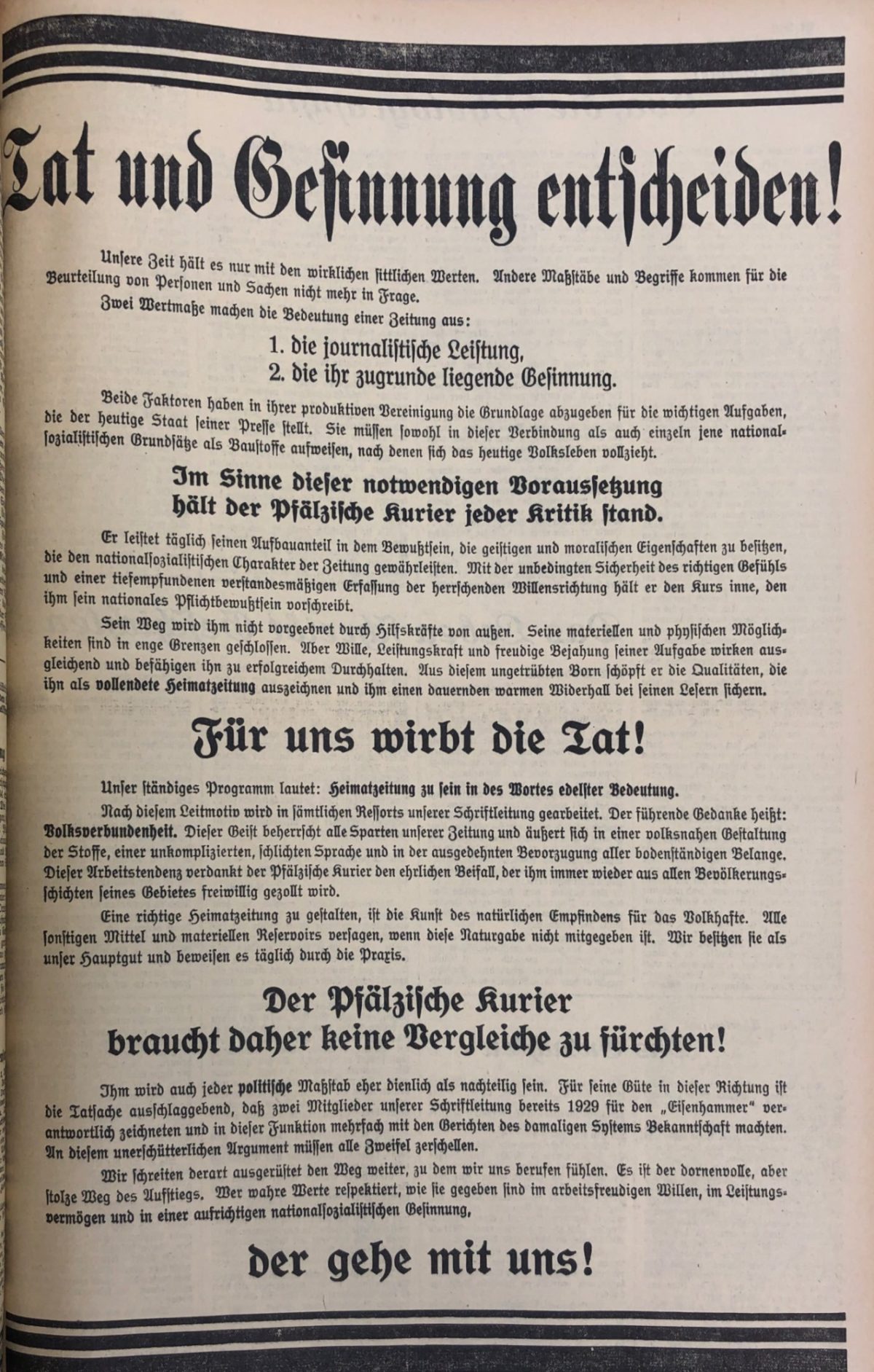 Hier kannst du dich zur Entstehung und politischen Ausrichtung des Pfälzischen Kuriers informieren.