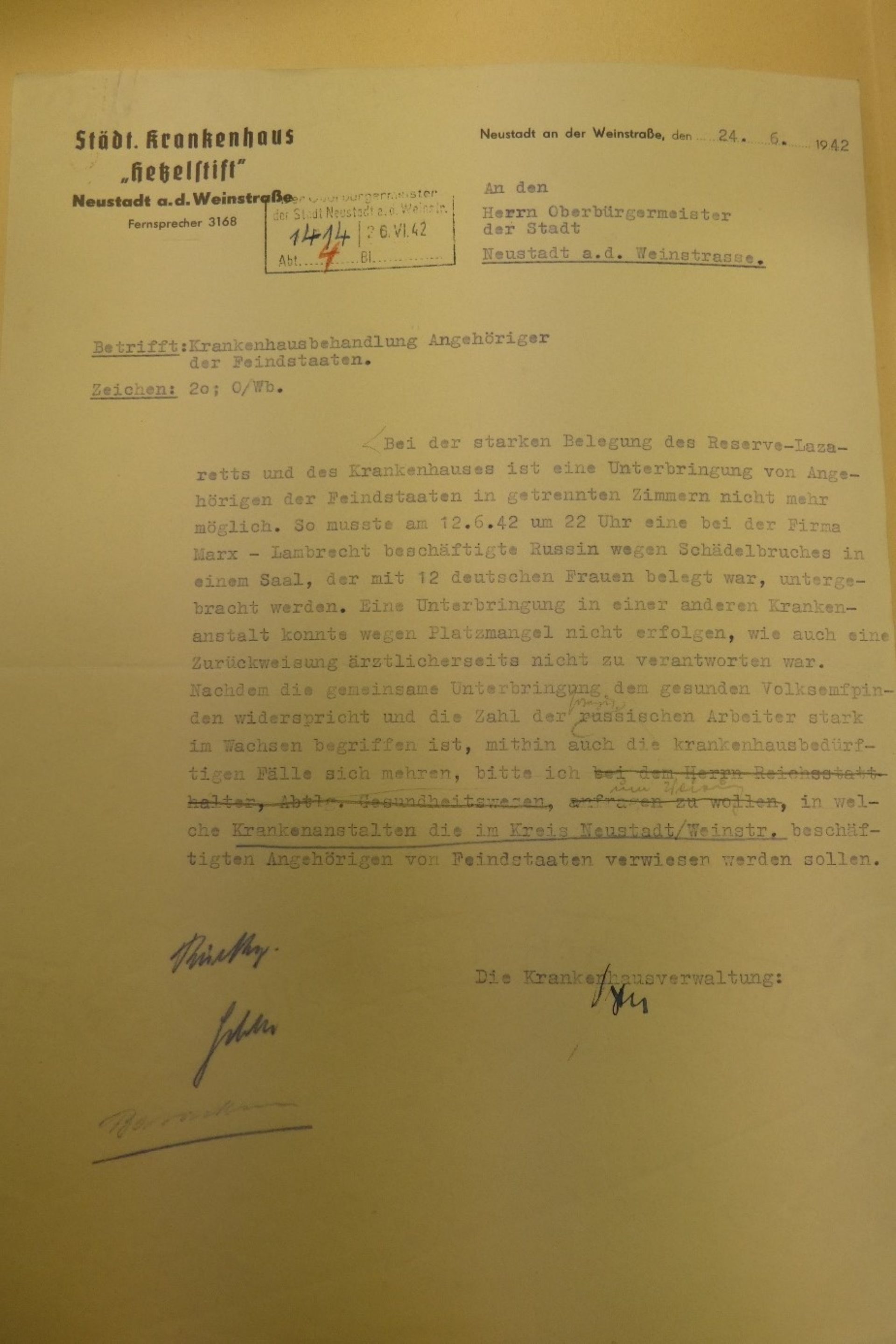 M16: Korrespondenz des Neustadter Oberbürgermeisters zu ausländischen Patient*innen im Krankenhaus „Hetzelstift“, 1942/43